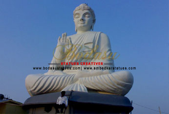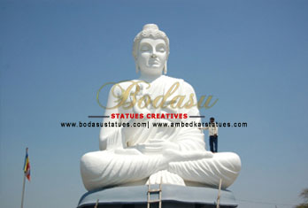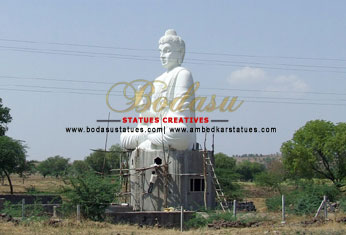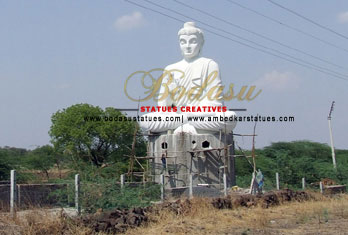 This statue of Buddha is ordered by Lohabande. It is ordered in 2007. It is 45 feet High Buddha Statue at Mukhed, Nanded, Maharashtra. It took 6months to the sculptor to make this statue with the help of 10 workers.